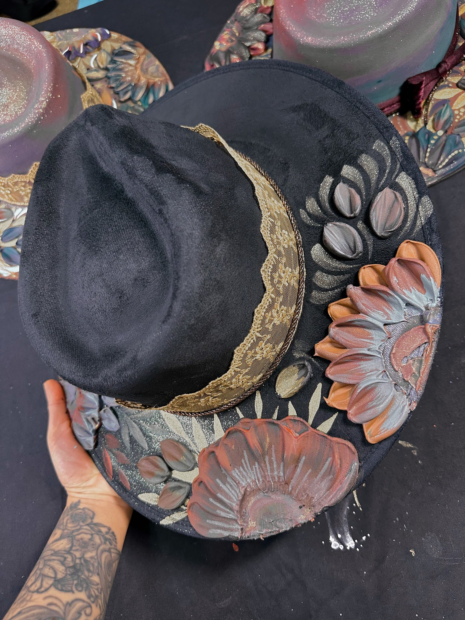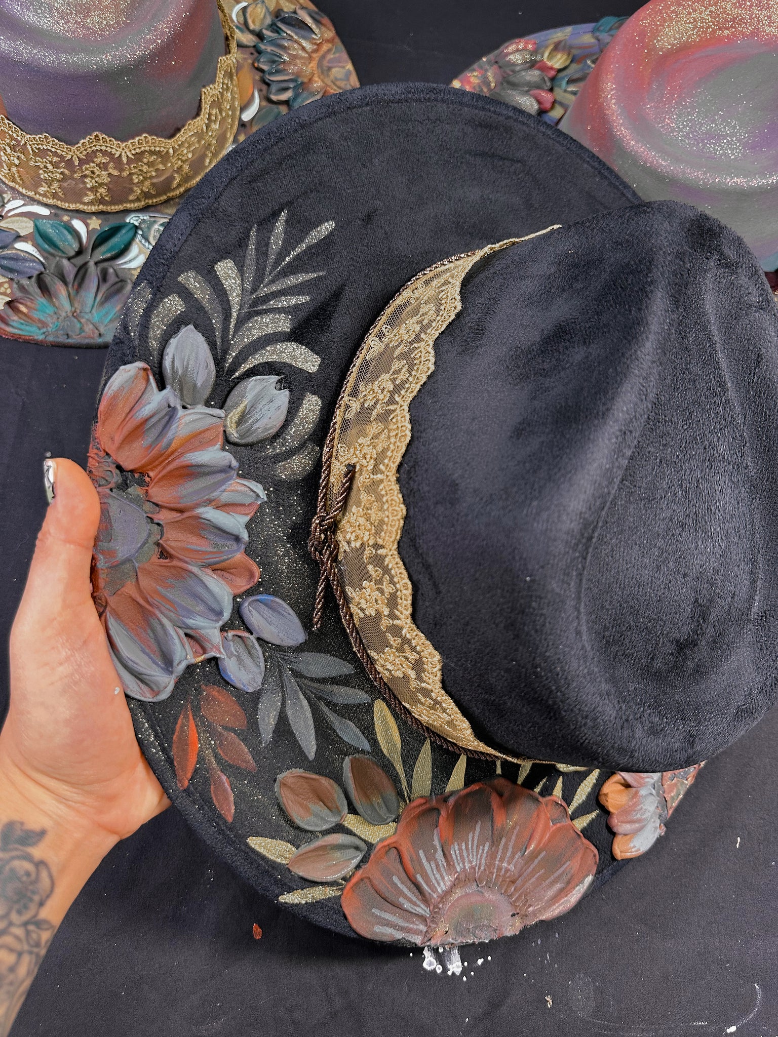 One of a kind hand-painted hat by Yaya in Kansas City
