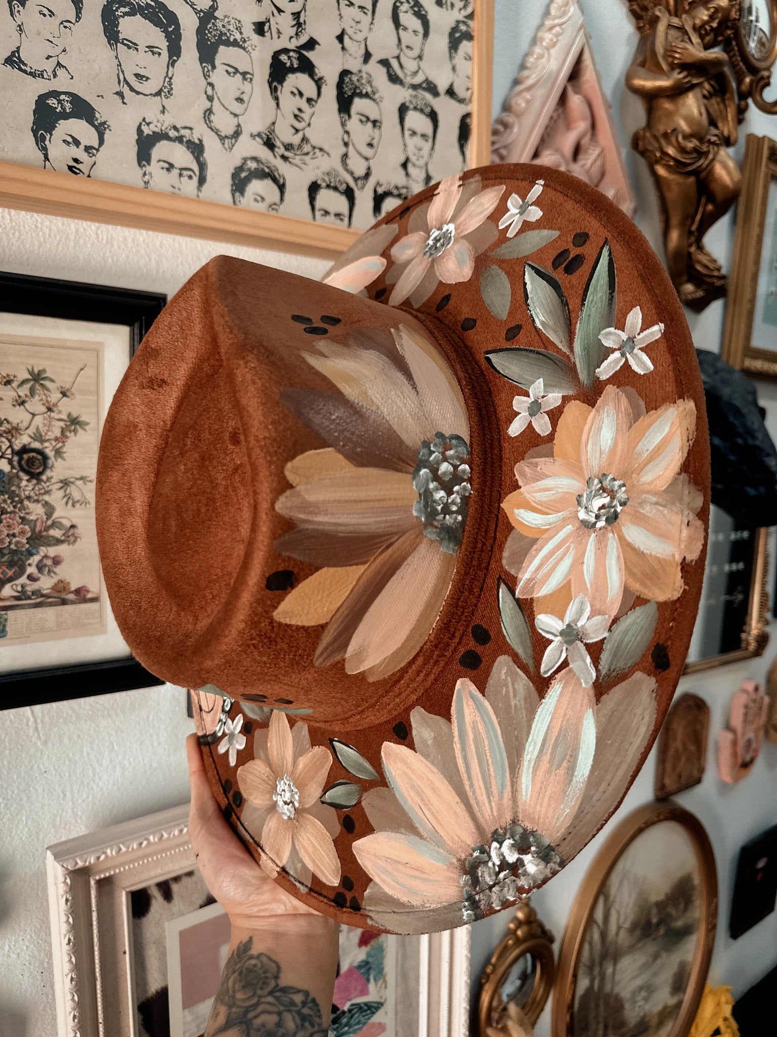 One of a kind hand-painted hat by Yaya in Kansas City