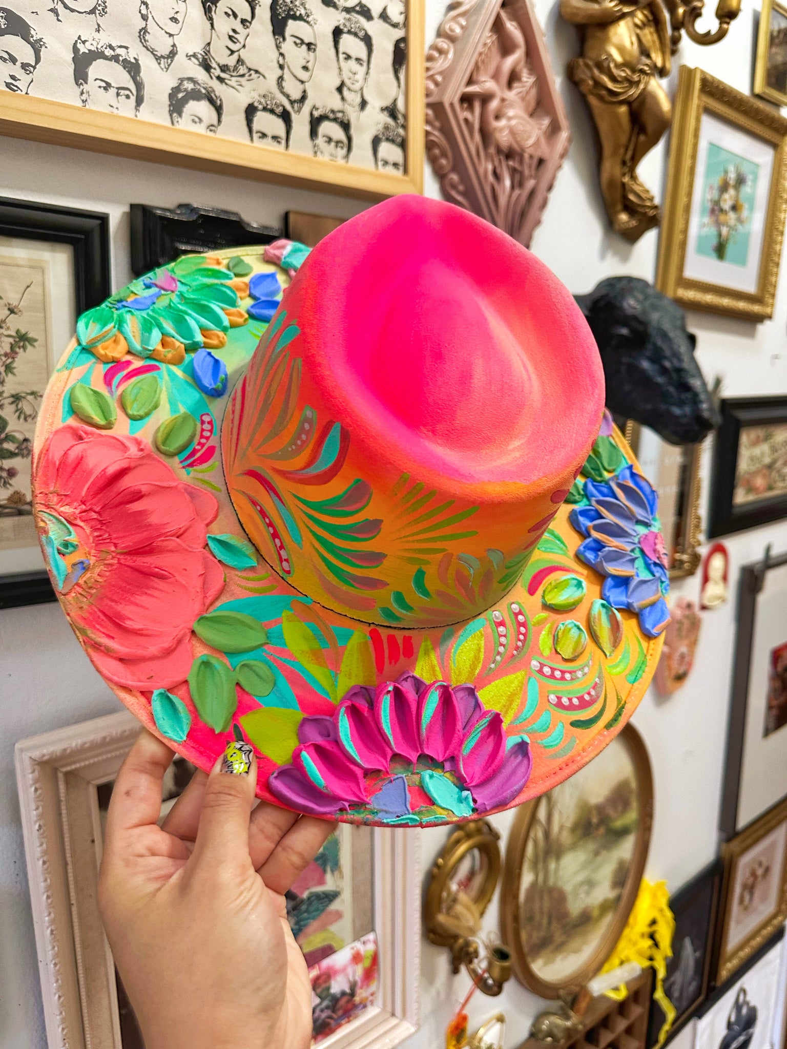 One of a kind hand-painted hat by Yaya in Kansas City