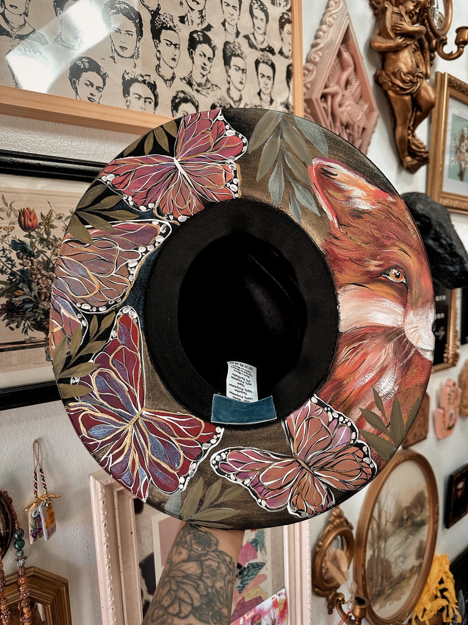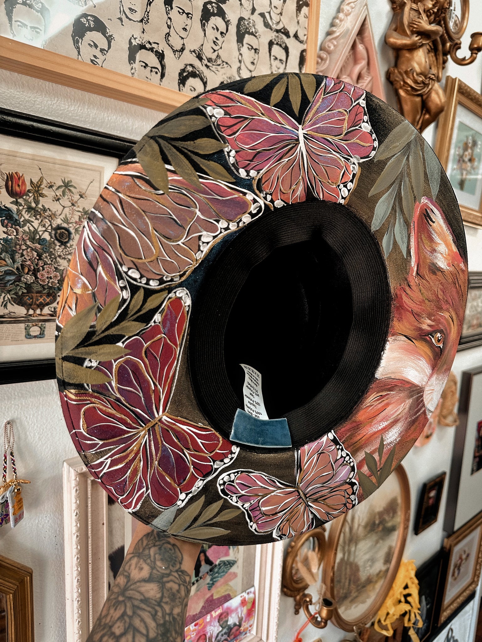 A completely freehand 1 of 1 — hand painted by Yaya in Kansas City and hand crafted hat by skilled artisans.