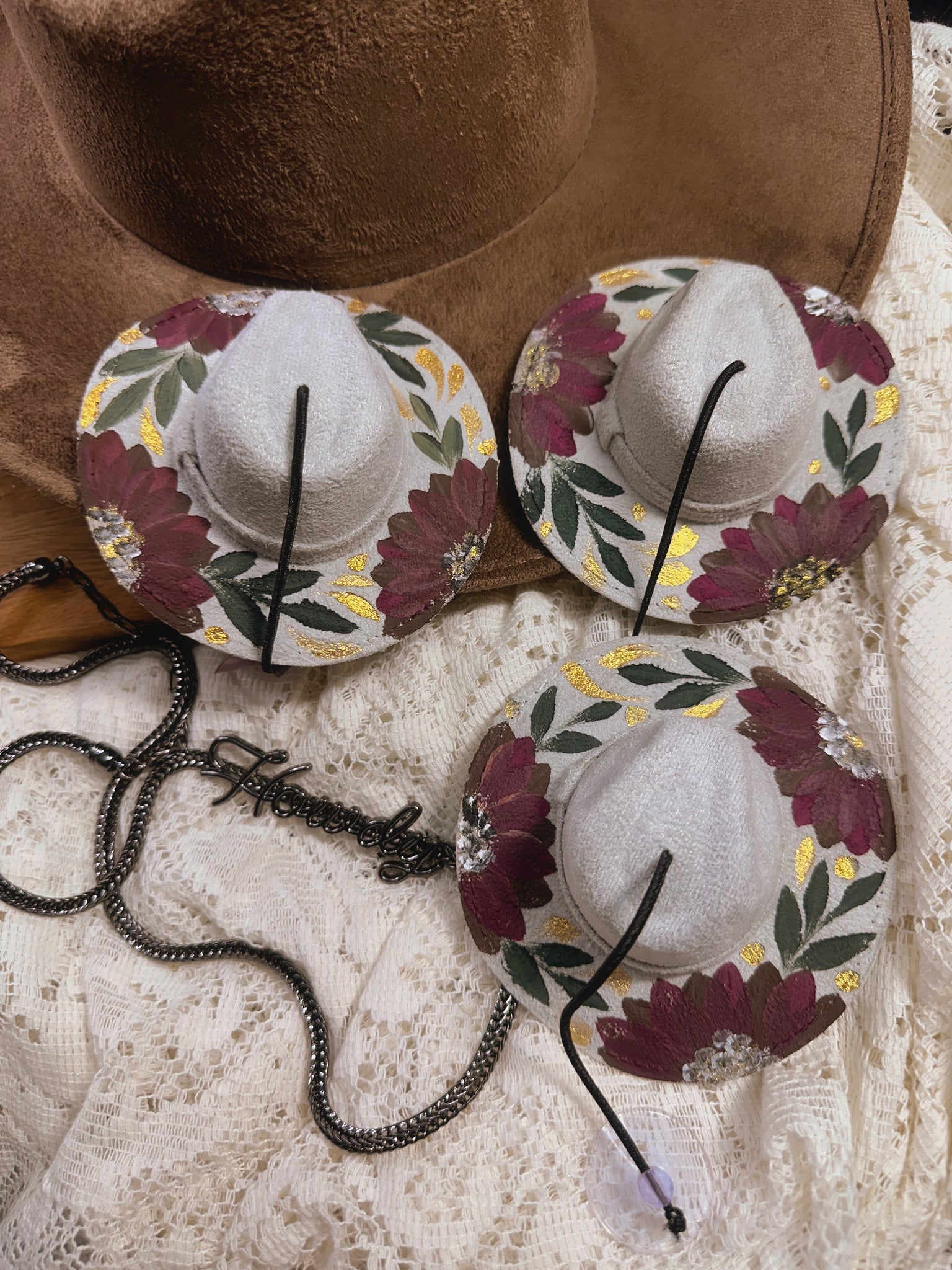 Each piece features original Yaya art, hand painted on the very same style of hats I use for my full size creations only these are mini versions, handmade with care.