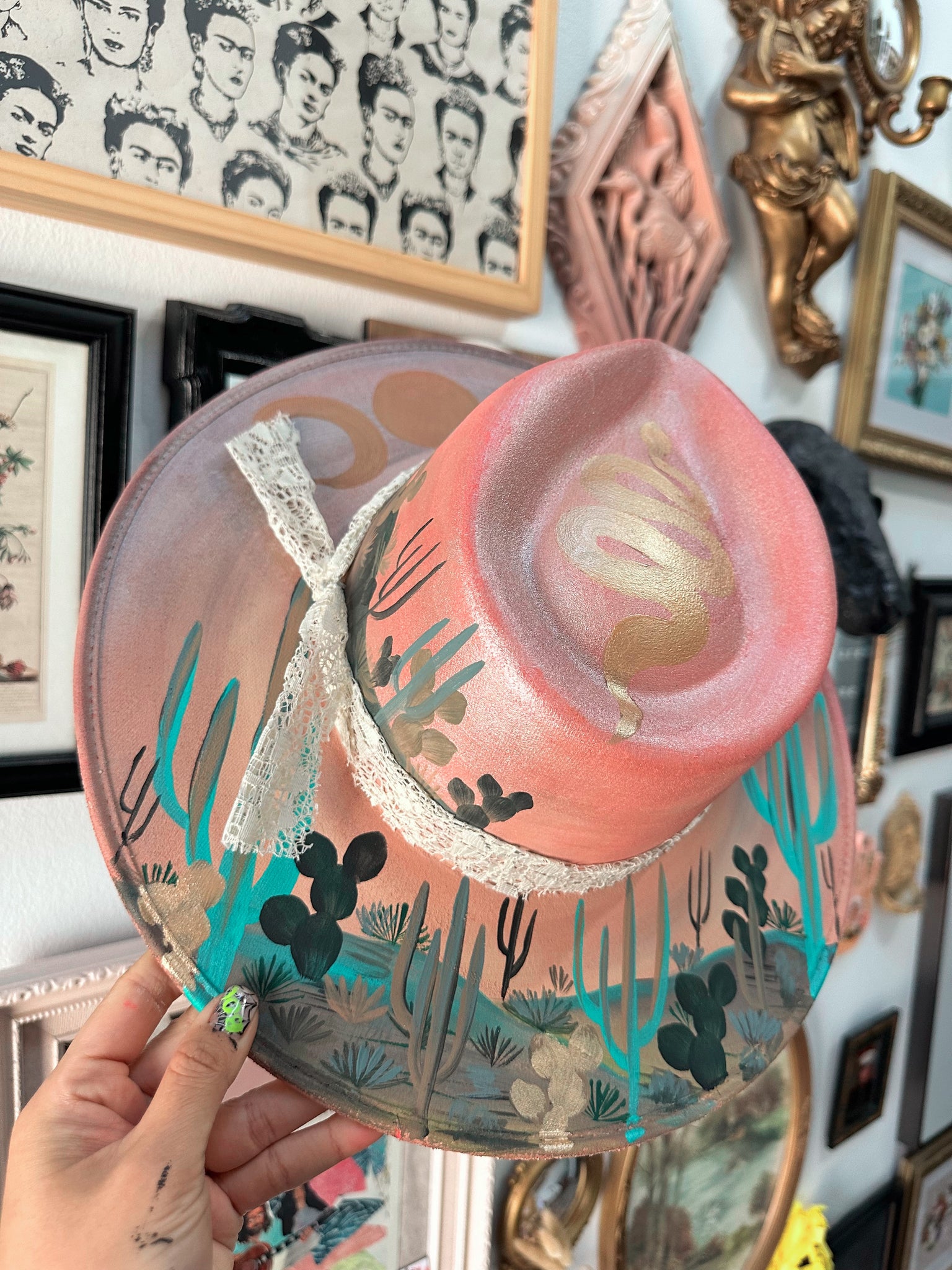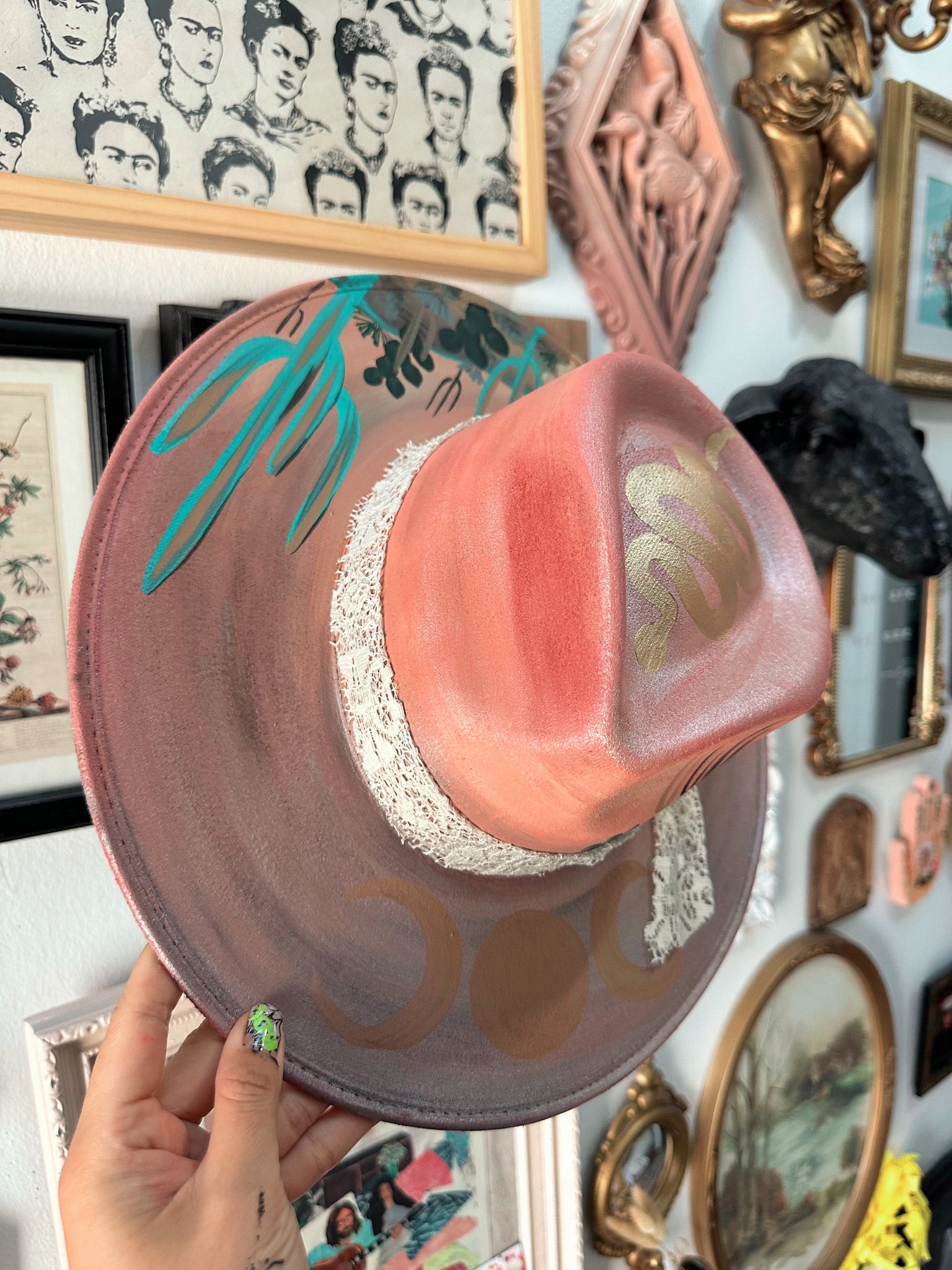 One of a kind hand-painted hat by Yaya in Kansas City