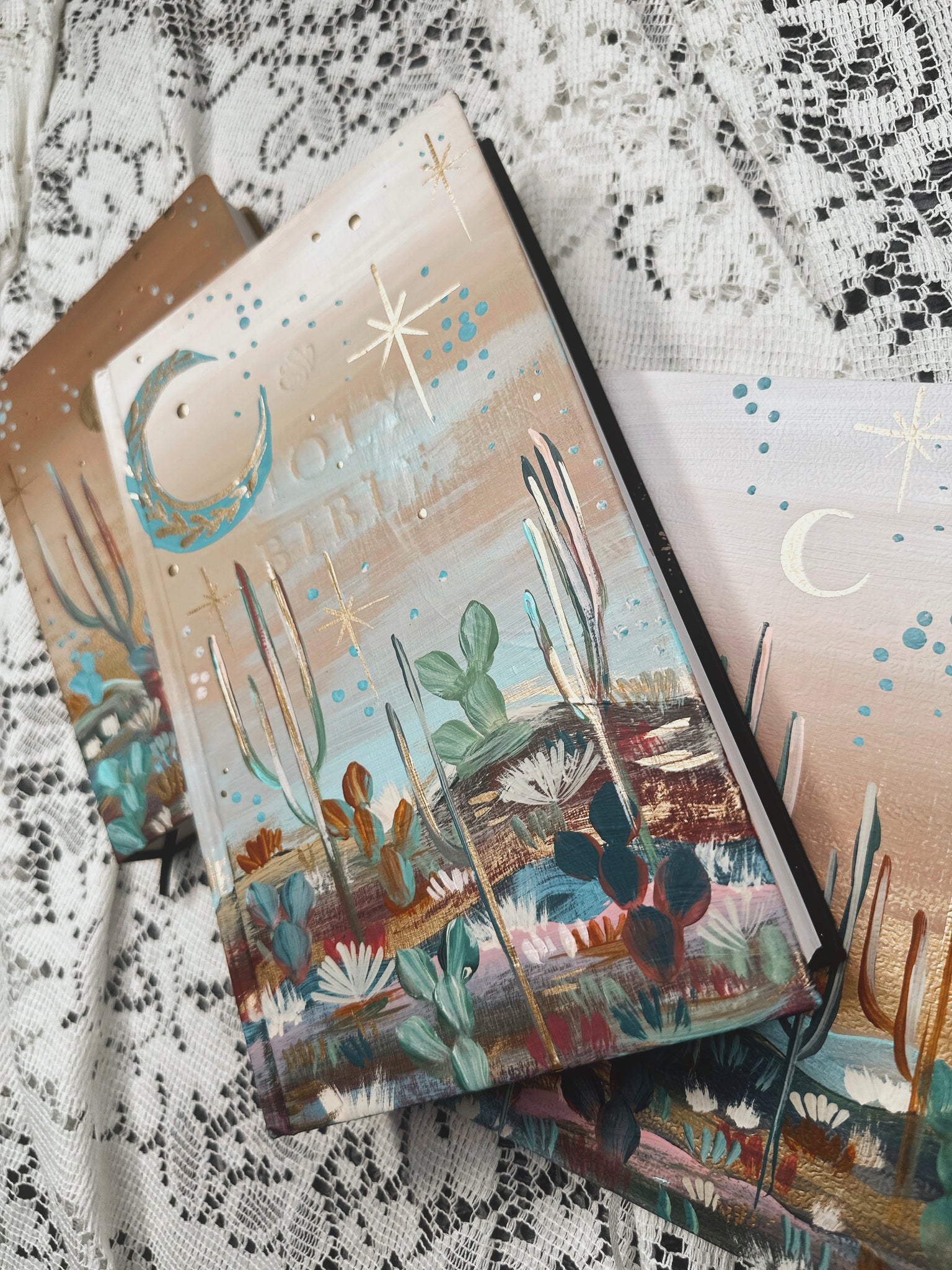 Each Bible is a unique hand painted piece of art, signed and wrapped with care. No two are the same, making this a truly one of a kind keepsake or gift.
